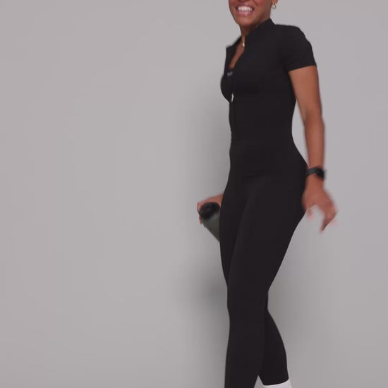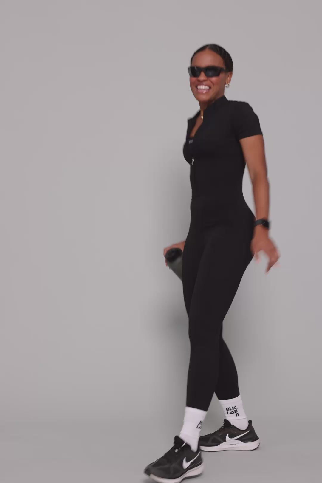 The 11Futurama Full Bodysuit is all about streamlined performance and standout style. Black, short-sleeve design with a half-zip front for adjustable coverage.