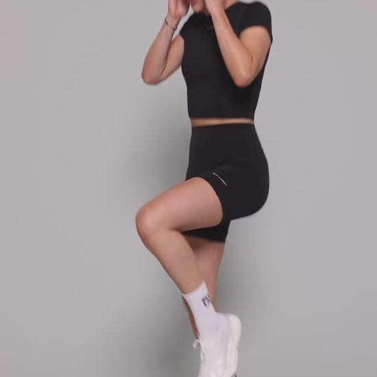 Engineered for a secure fit and high flexibility. The sleek black design shapes and supports, giving you freedom without distraction. High-rise cut, bold silhouette – built for focus, built for performance.